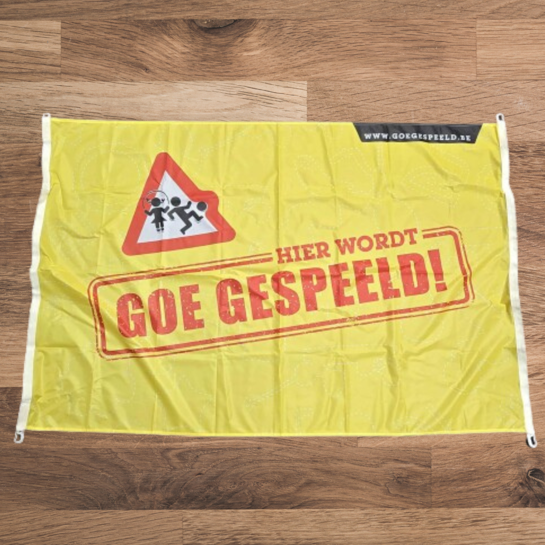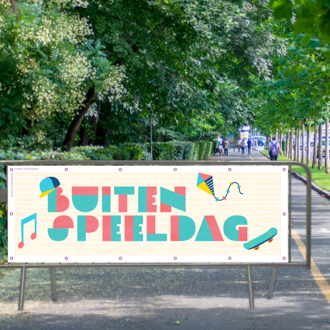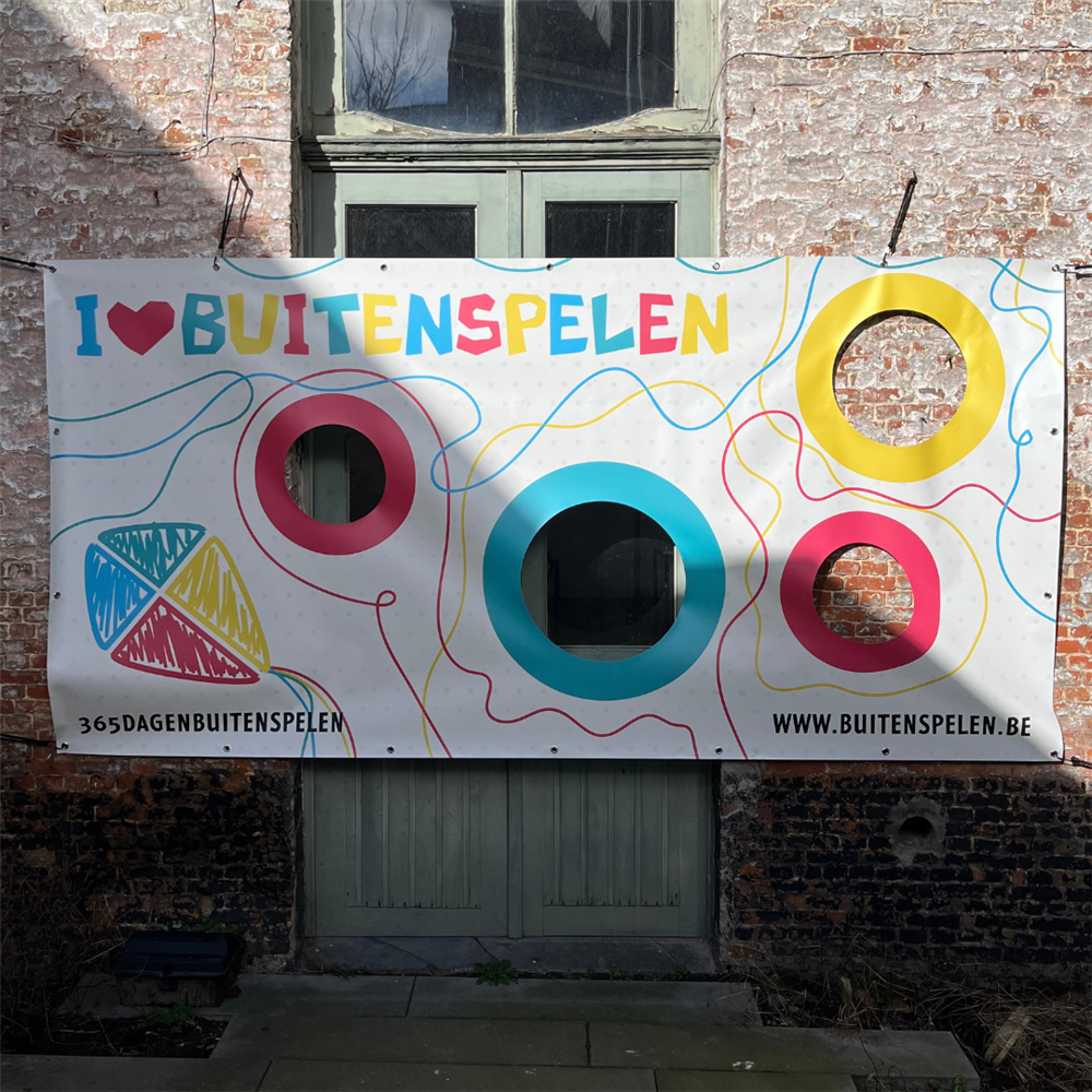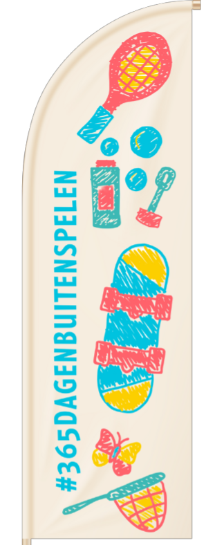Met deze banner kan je elke dag van het jaar tonen dat jullie graag buitenspelen. De gaten verwerkt in het design voorzien een speelimpuls voor groot en klein.