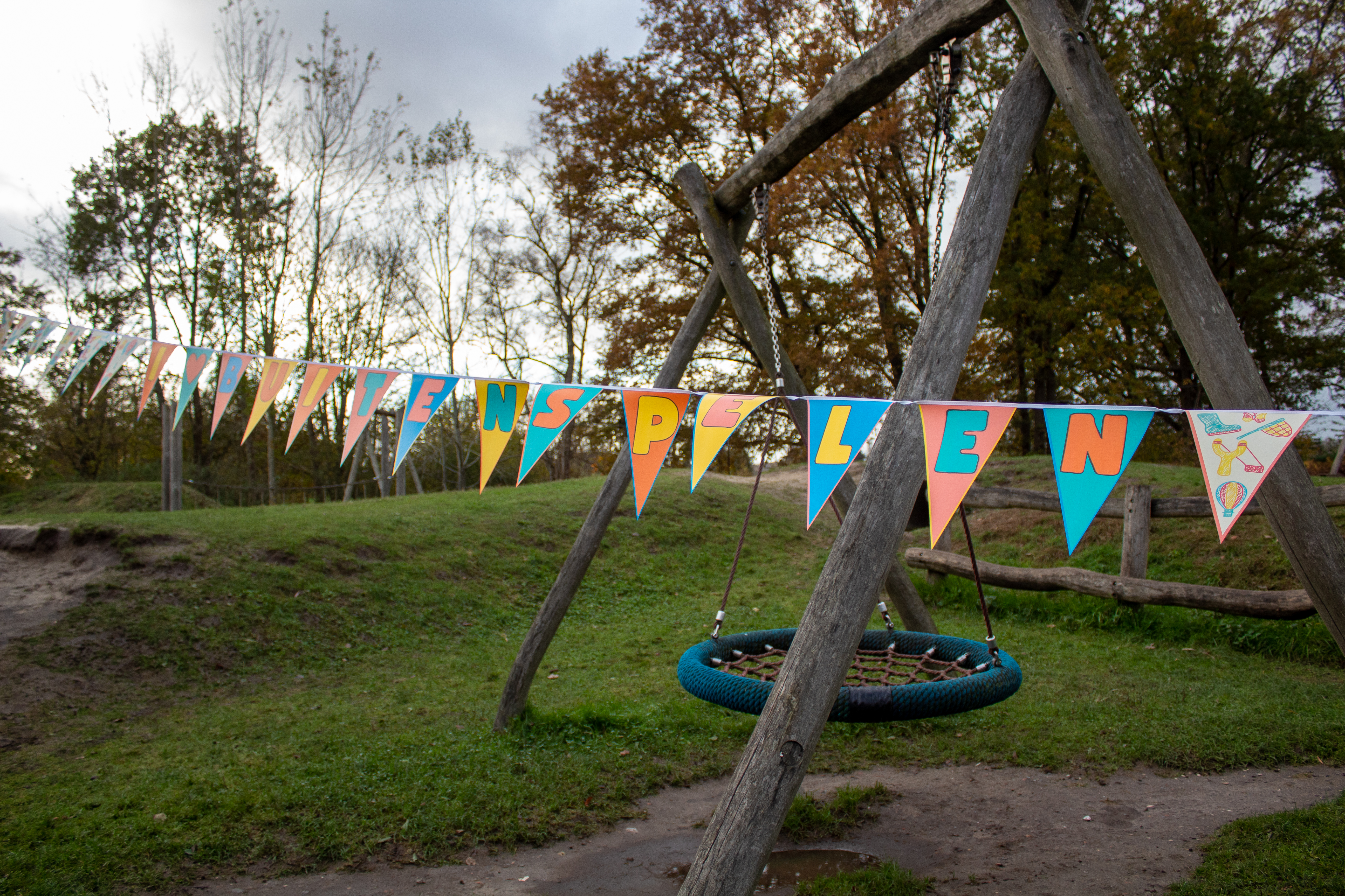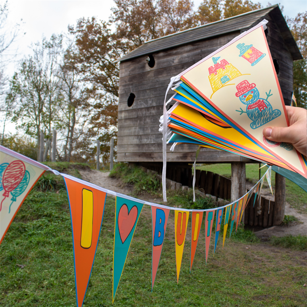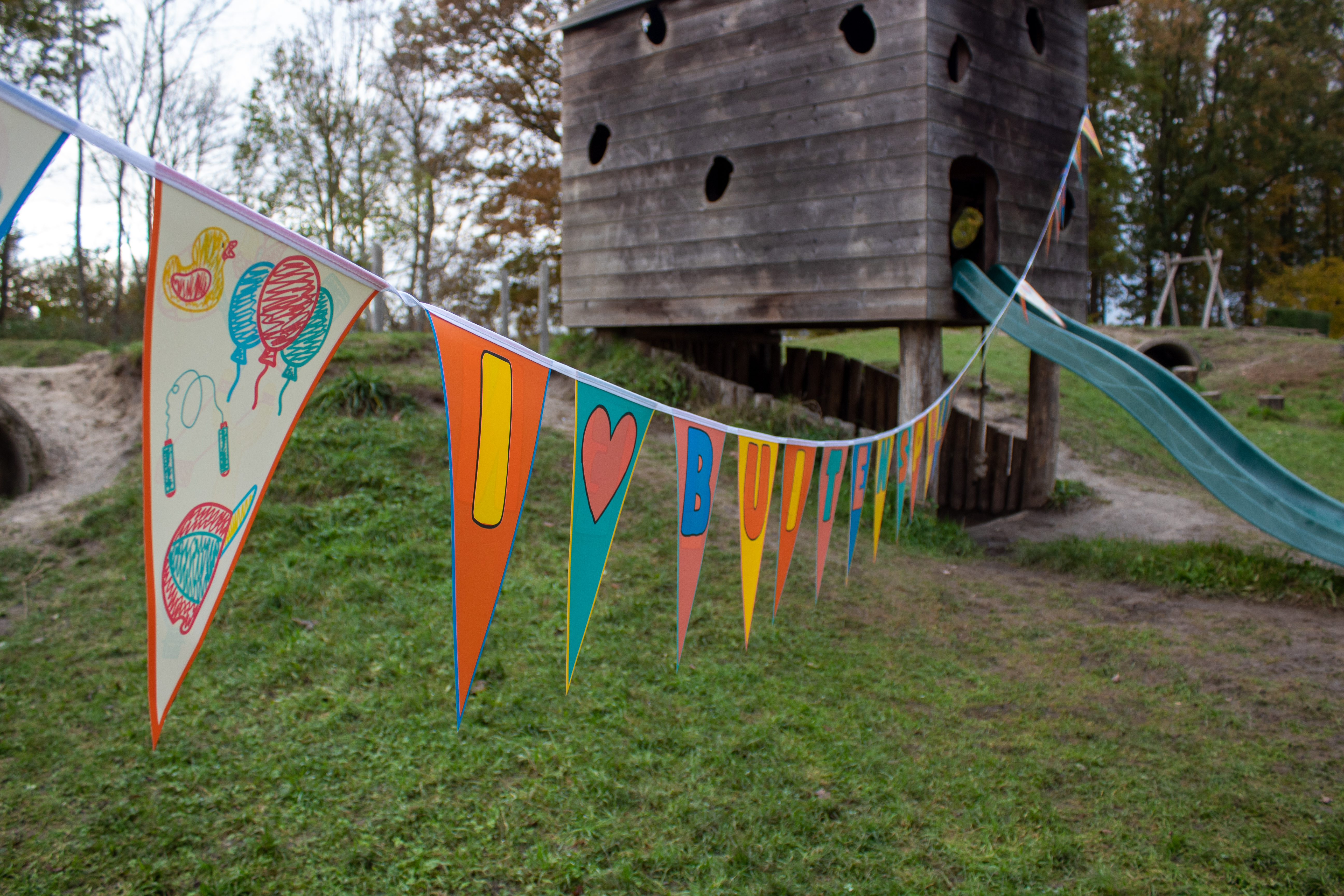 Met deze banner kan je elke dag van het jaar tonen dat jullie graag buitenspelen. De gaten verwerkt in het design voorzien een speelimpuls voor groot en klein.